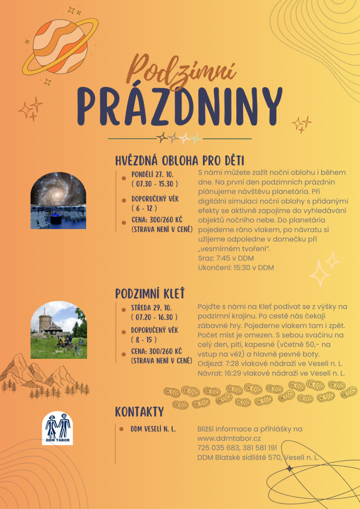 Pojďte s námi na Kleť podívat se z výšky na podzimní krajinu. Po cestě nás čekají zábavné hry. Pojedeme vlakem tam i zpět.